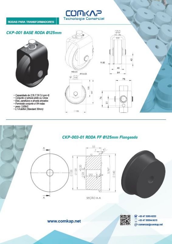Rodas para transformadores com capacidades de 2,5t a 7,5t.
